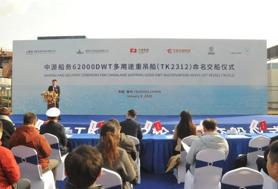 中源船务高级副总裁郑永敏在致辞时表示,口岸船舶以高标准提前完成该船的建造并顺利交付,彰显了在高端多用途船领域的技术实力和建造能力。