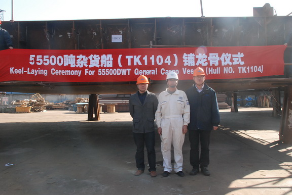 In the morning of December 17, the Keel-laying Ceremony for four (4) units of 55500T General Cargo Ship (TK1101-4) built for domestic owner was held. Leaders from